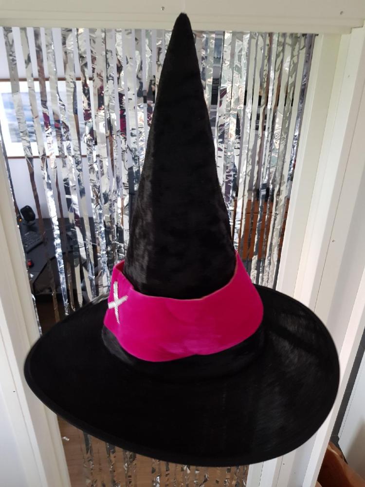 Om du inte har tillgång till spindelväv häng gärna upp lite ‘sparkling’ innanför dörren (se bilden). Det skapar spänning och kan användas till en photo shoot. Innanför ‘glitter gardinen’ fäst sedan upp (med gummitråd), en häxhatt. När dina gäster anlända kan du be var o en ställa sig framför glitter gardinen, dra försiktigt ner häxhatten på huvudet och med uppmaning ‘say cheese’ tar en bild! Det blir ett fint minne från kvällens happening.