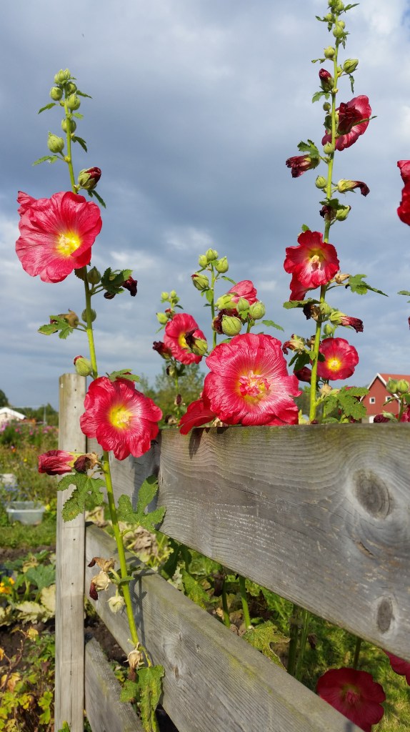 Några egna tolkningar av det jag såg; stockrosor bakom bänken, avbild på en entré vid Ramberget respektive metallputs tillhörande en av många husprojekt vi drev.