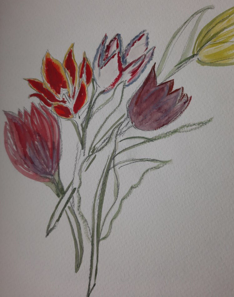 Överst är det (troligen) Snow Crystal och nedanför står en Vincent van Gogh tulpan. I år har jag lagt till flera sorter varav en del redan börjat visa att de är på g ..… Jag återkommer med uppdatering om hur det går framöver.