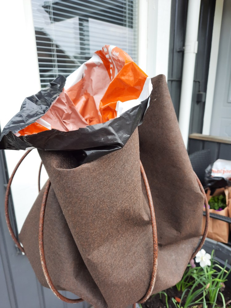 En in-och utåtvänd, tom jordpåse (eller liknande)