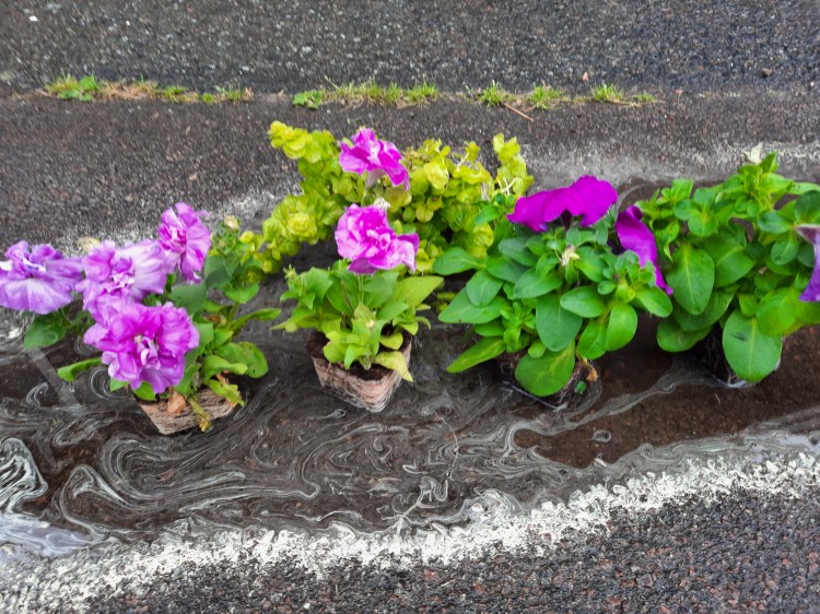 Under tiden du gör stativet mm i ordning, ställ plantorna i ett rejält vattenbad (här står mina i en händig vattenpöl som blev till efter en häftig regnskur – käckt).